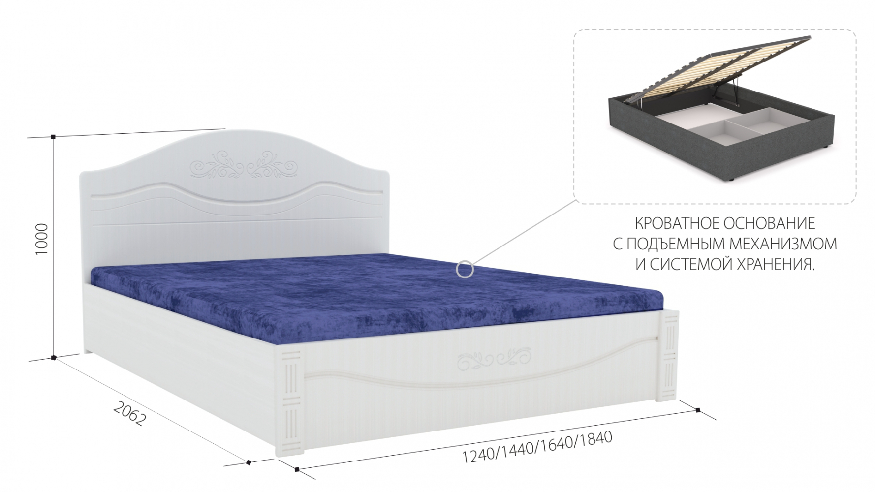 Кроватное основание с подъёмным механизмом и системой хранения..